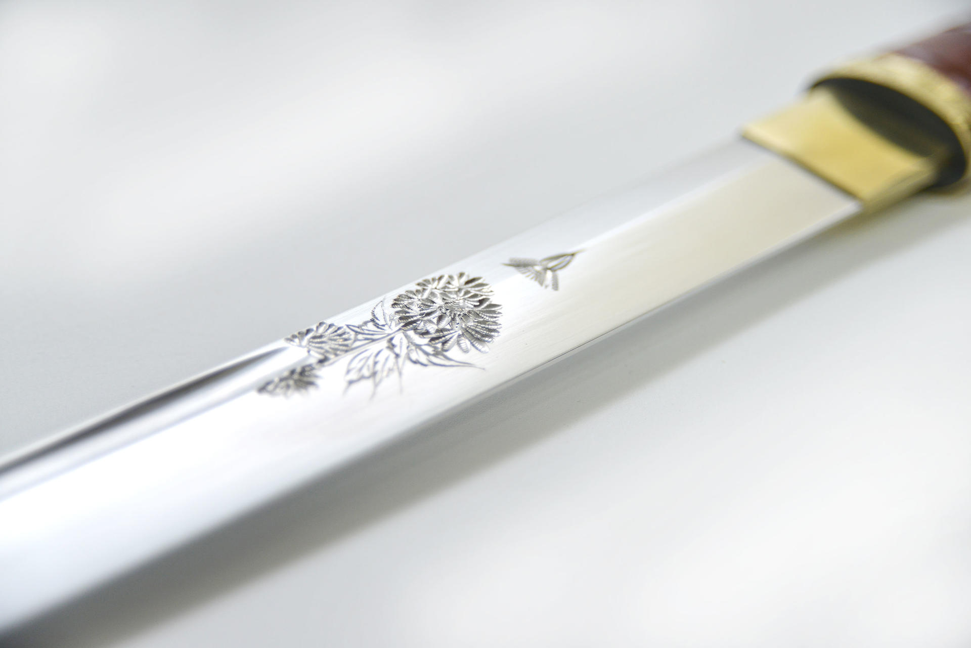 검신에는 직접 손으로 조각한 무늬가 들어가 있습니다.